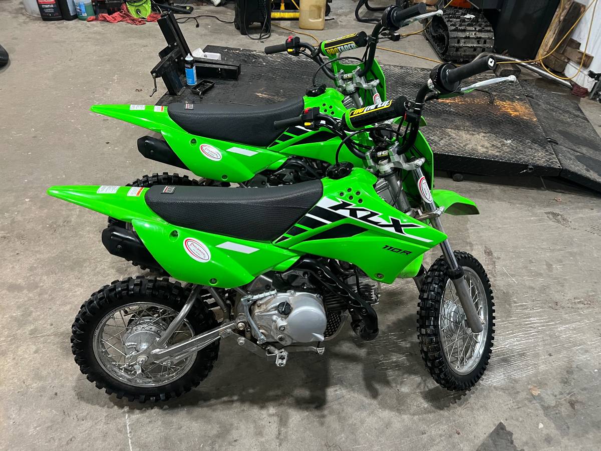 2) 2025 Kawasaki green KLX110R dirt bike #0225