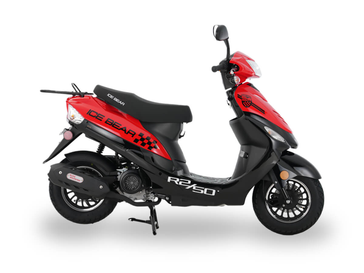 2025 IceBear Menace 50(PMZ50-Z1) 50cc GY50, 12″/10″ wheels, LED lights,digital speedometer,yuanxing tires,single rear absorber,disc/drum